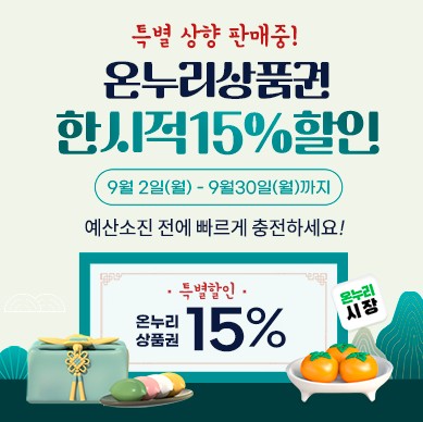 온누리상품권을 사용하면 최대 15% 할인 혜택을 받을 수 있습니다.